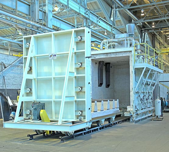 ITS TruTemp Car Bottom Furnaces are designed for processing of large and heavy material loads. Standard features include high efficiency gas or electric heating, robust structural and thermal insulated construction, operating temperature ranges to 2800 F, temperature uniformity requirements to meet API, standard temperature uniformity to +/- 15 F, standard and custom designs. Process applications include heat treating, homogenizing, annealing, preheating and stress relieving for a variety of materials including aluminum, steel, cast iron, titanium and more. ITS services the process equipment needs of the aerospace, automotive, heavy equipment, petrochemical, military industries and more. See pdf brochure for more information and contact our office to discuss your equipment needs.